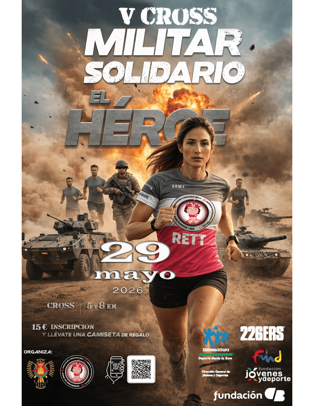Desde la Asociación Princesarett junto al Regimiento Acorazado Castilla nº16 del Ejército de Tierra, organizamos la V edición del cross Solidario "El Héroe". Esta reserva es para la modalidad 8km y se llevará a cabo en la Base Militar del General Menacho. Cross exclusivo para militares.